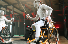 * Wheelchair fencing (referred to as Parafencing) is a fast moving game of tactics and techniques. Parafencing is enjoyed by athletes with upper and lower limb differences, athletes with cerebral palsy, and athletes with other balance and mobility restrictions.